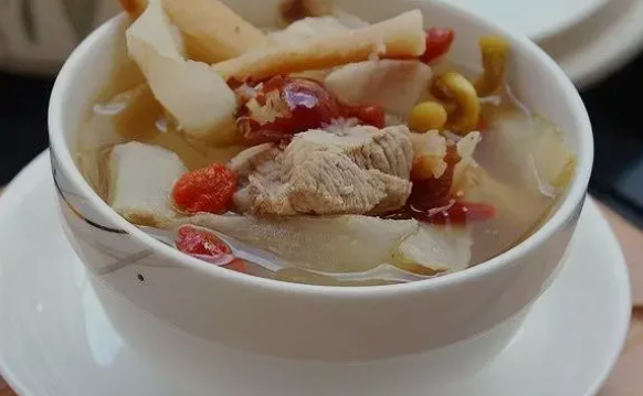 功效:芡实有补脾、祛湿的功效,温氏乌骨**含有黑色素、B族维生素、18种氨基酸和18种微量元素,而且脂肪含量很低,这道汤能健脾祛湿、利水肿、补气养生。